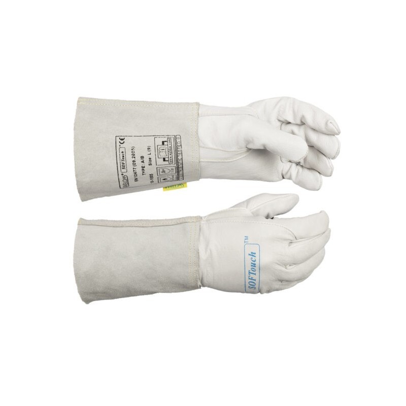 Conoce el guante de soldadura SOFTouch™ 10-1005 de Weldas, la solución ideal para soldadores profesionales que requieren precisión, protección y comodidad durante largas jornadas. Fabricado en cuero flor de ternera de primera calidad, este guante es extraordinariamente suave y flexible, proporcionando una excelente sensibilidad al tacto y máximo confort.