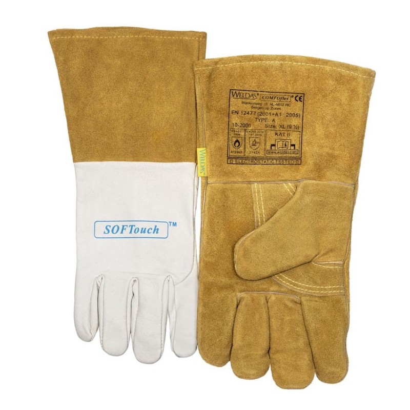 Fabricados con costuras reforzadas en hilo KEVLAR® (3, 4 y 5 capas) y probados contra electrostática, cumplen con la exigente certificación europea EN 12477 Tipo A + B. Elige Weldas COMFOflex® 10-2009 para obtener lo mejor en protección, comodidad y precisión durante tus trabajos de soldadura más exigentes.